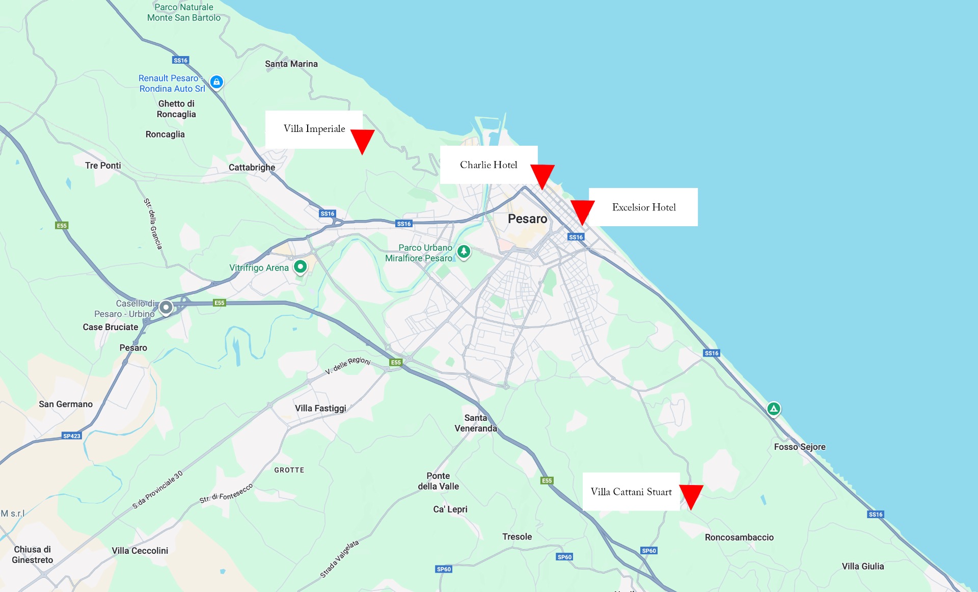 For your stay in Pesaro, you can decide to book a room at Villa Cattani Stuart or at other nearby Hotels.